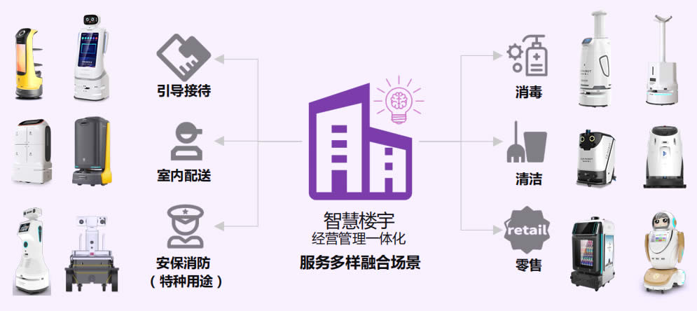 在城市生活數(shù)智化水平不斷提升的大背景下,服務(wù)機器人將是服務(wù)業(yè)場景中物理世界與數(shù)字空間的接口;機器人將與場景本身及其他設(shè)備形成互聯(lián)互通,實現(xiàn)一體化智慧場景,全方位提升經(jīng)營和管理能效;