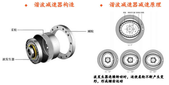 諧波減速器是一種靠波發(fā)生器使柔輪產(chǎn)生可控的彈性變形波,通過其與剛輪的相互作用,實現(xiàn)運動和動力傳遞的傳動裝