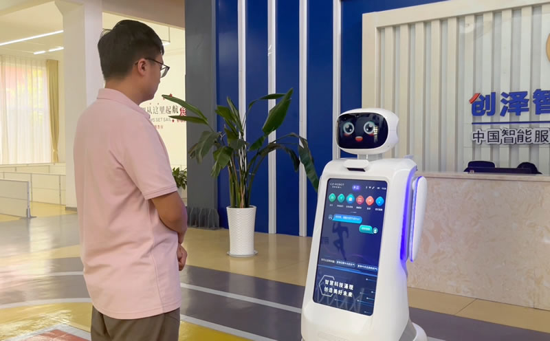 一來到創(chuàng)澤公司前臺,一名機器人接待員便主動迎上前來。它不但可以詢問你的來訪目的,還可以為你做信息登記,向你介創(chuàng)澤基本情況、業(yè)務(wù)實力、黨建特色、所獲榮譽;它可以引L你到接待室,也能對一些問詢做出基本回答。