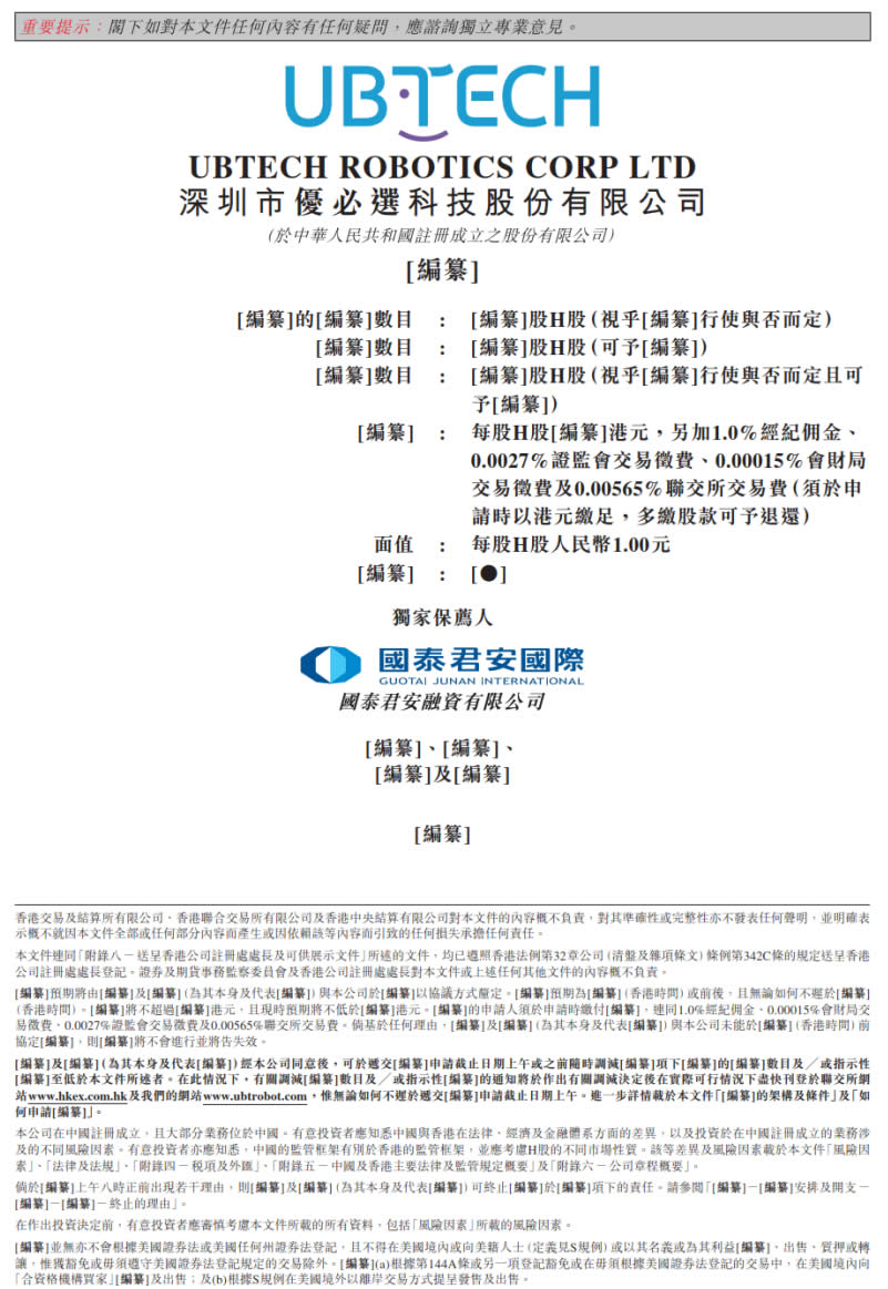 1月31日晚,優(yōu)必選科技提交赴港上市申請,沖刺“人形機器人D一股”。