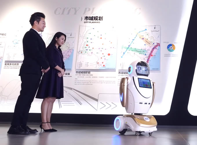 機器人能夠一邊引導(dǎo)觀眾參觀,到達每一個展位還能進行專業(yè)的講解服務(wù),機器人不知疲勞,沒有心情不好的時候,不會又小情緒,在展館展廳的講解服務(wù)方面會比人工做的更到位。