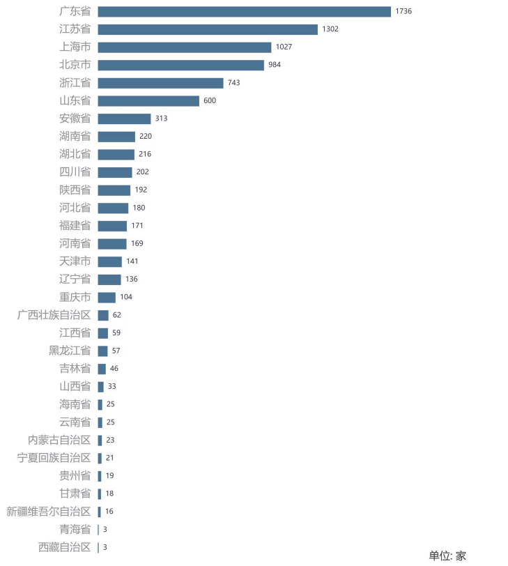 截止到2023年02月28日,廣東省、江蘇省和上海市機器人產(chǎn)業(yè)企業(yè)數(shù)量位列全國前三,分別有1, 7 3 6、1, 3 0 2和 1,027家。
