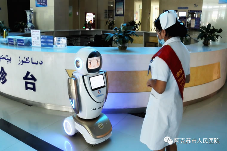 “您好!請(qǐng)問(wèn)有什么能夠幫助您的嗎?”近日,在阿克蘇市人民醫(yī)院門診綜合樓大廳內(nèi),一個(gè)長(zhǎng)相憨態(tài)可掬的智慧醫(yī)療機(jī)器人--“創(chuàng)創(chuàng)”,一經(jīng)出現(xiàn),就瞬間吸引了前來(lái)我院就醫(yī)患者的眼球?汕f(wàn)別小看這個(gè)萌萌噠的小家伙,它的作用可大著呢!