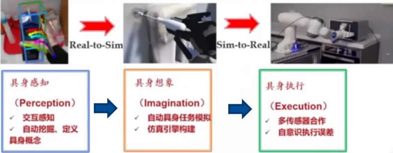 不僅僅理解行為,更需要能執(zhí)行行為,機(jī)器人能夠執(zhí)行行為才是真正理解行為。 通過(guò)計(jì)算機(jī)視覺(jué)以及行為認(rèn)知識(shí)別, 讓機(jī)器人能夠確認(rèn)和分辨一個(gè) 行為僅僅只是D一步,這也只是傳統(tǒng)旁觀式 AI 學(xué)習(xí)所達(dá)到的功能水平, 例如,傳統(tǒng) AI 學(xué)習(xí)可以讓機(jī)器學(xué)習(xí)"盒子,概念并在新的場(chǎng)景中說(shuō)出 "盒子, 這個(gè)標(biāo)簽, 但在具身智能學(xué)習(xí)模式中, 機(jī)器通過(guò)感知環(huán)境實(shí)體, 通過(guò)親身體驗(yàn)完成具身學(xué)習(xí),終理解場(chǎng)景并形成"打開(kāi),這個(gè)概念。 因此, 當(dāng)機(jī)器可以執(zhí)行該行為才是具身智能的落腳點(diǎn)。