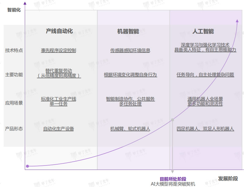憑借機(jī)器視覺,自然語言理解等人工智能技術(shù)的發(fā)展,初代“AI+”機(jī)器人產(chǎn)品逐步成熟,生成式AI的爆發(fā)與通用人工智能的曙光
