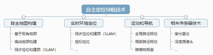 按照所實現的功能劃分,自主定位導航技術主要包含了以下內容: